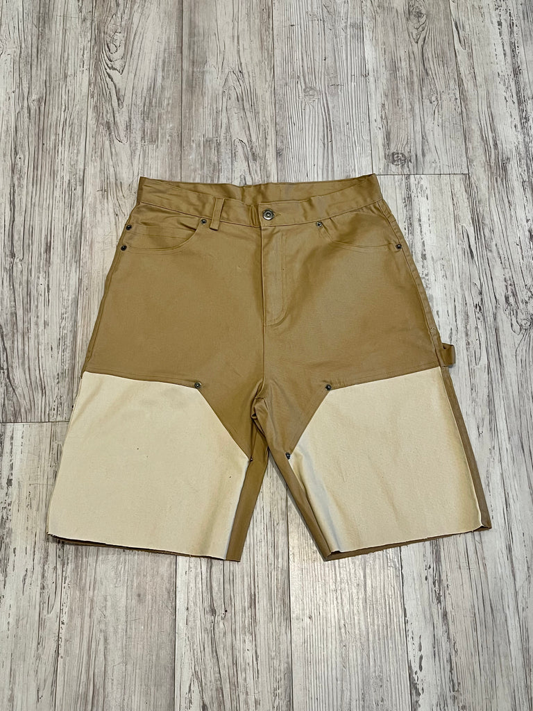 Khaki Two Tone Raw Edge Carpenter Shorts