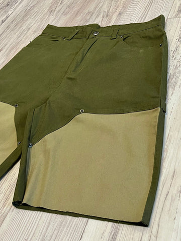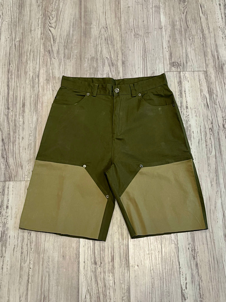 Olive Two Tone Raw Edge Carpenter Shorts