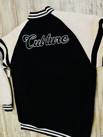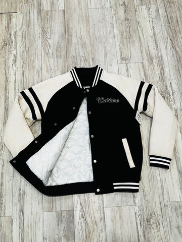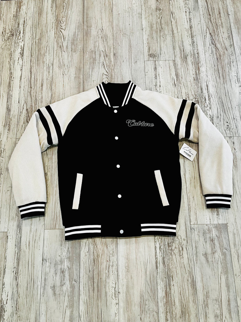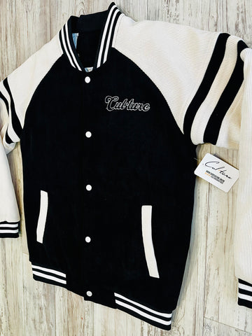 Black/Natural Corduroy Varsity Bomber