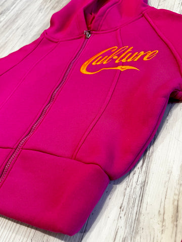 Hot Pink/Orange Paneled Crop Hoodie