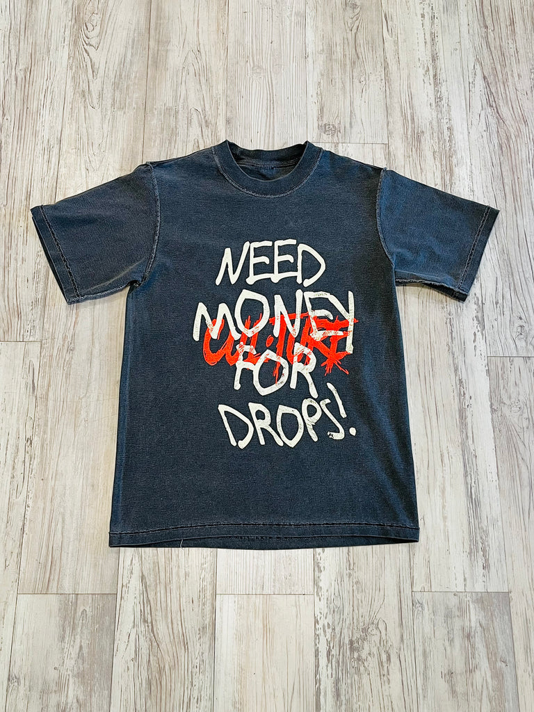 Vintage Black “Need $ For Drops” Inside Out Garment Dyed Shirt
