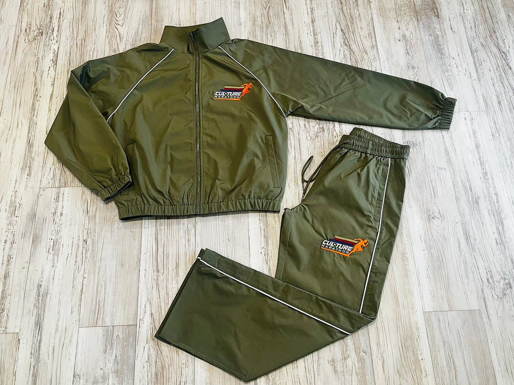 Olive “Marathon Runner” Heavyweight Nylon Tracksuit – Shop Culture