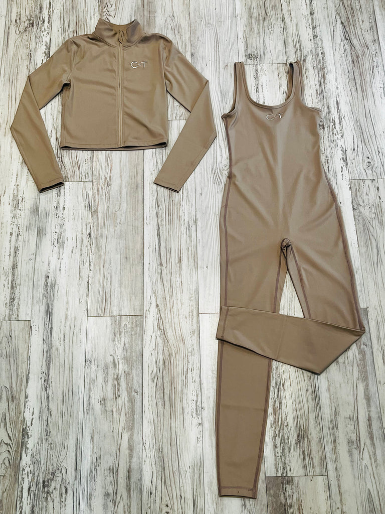 Taupe Premium Athleisure Jacket & Bodysuit