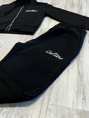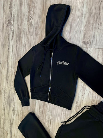 Black Dual Zipped Hoodie Sweatsuit(W)